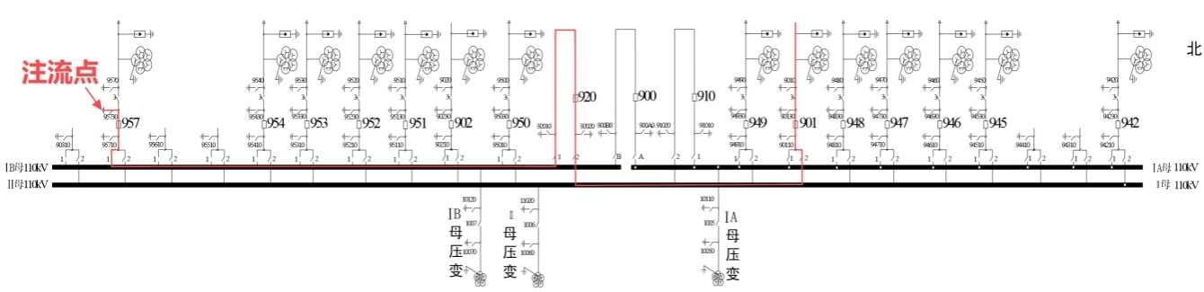 上圖低壓側主變間隔CT P1指向母線,電流P2進P1出,電流與電壓相位反180°,又因Y轉▲,電流超前電壓30°,因此低壓側主變間隔二次電流角度為270°+180°+30°=120°正序;低壓側間隔CT P1指向母線,電流P1進P2出,電流與電壓角度為270°+30°=300°正序。