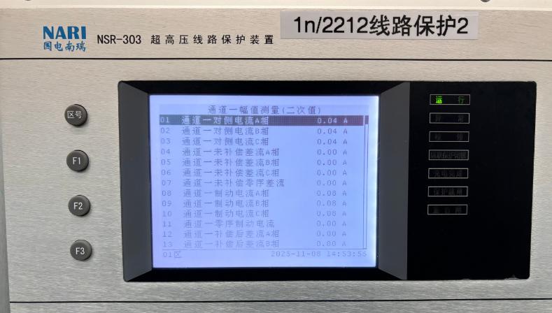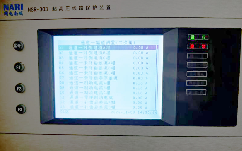 待電流升起來后在保護裝置查看采樣信息。